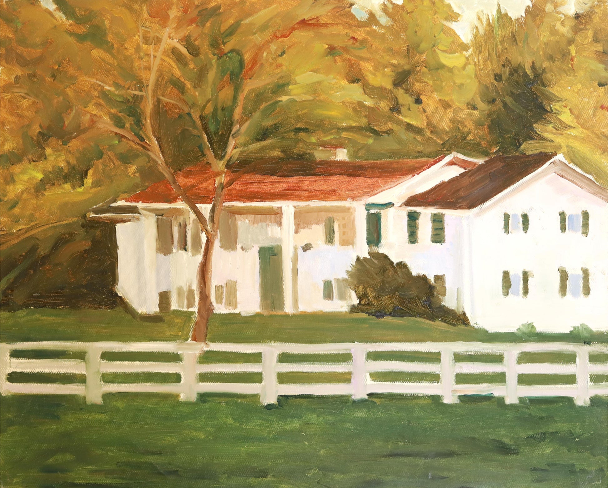 - Color Storytelling: Warm oranges and golds intertwine, with red-roofed white houses glowing in sunlight. The contrast between white fences and green grass creates a healing autumnal palette like a natural filter.
